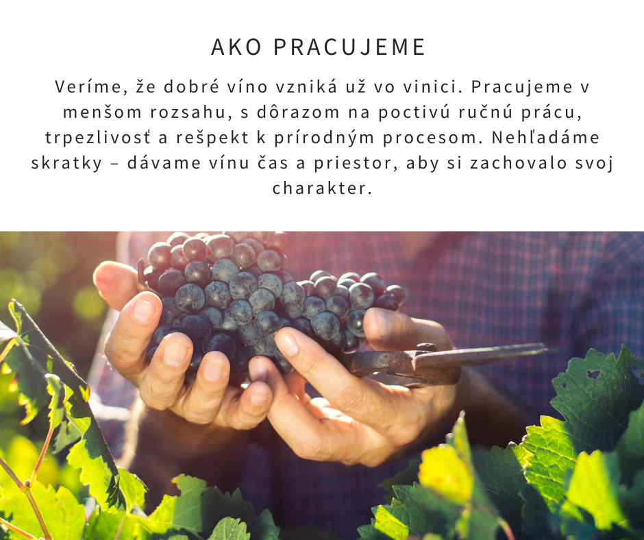 Naše vína majú jasný pôvod, charakter regiónu a poctivý rukopis malého vinohradníctva.